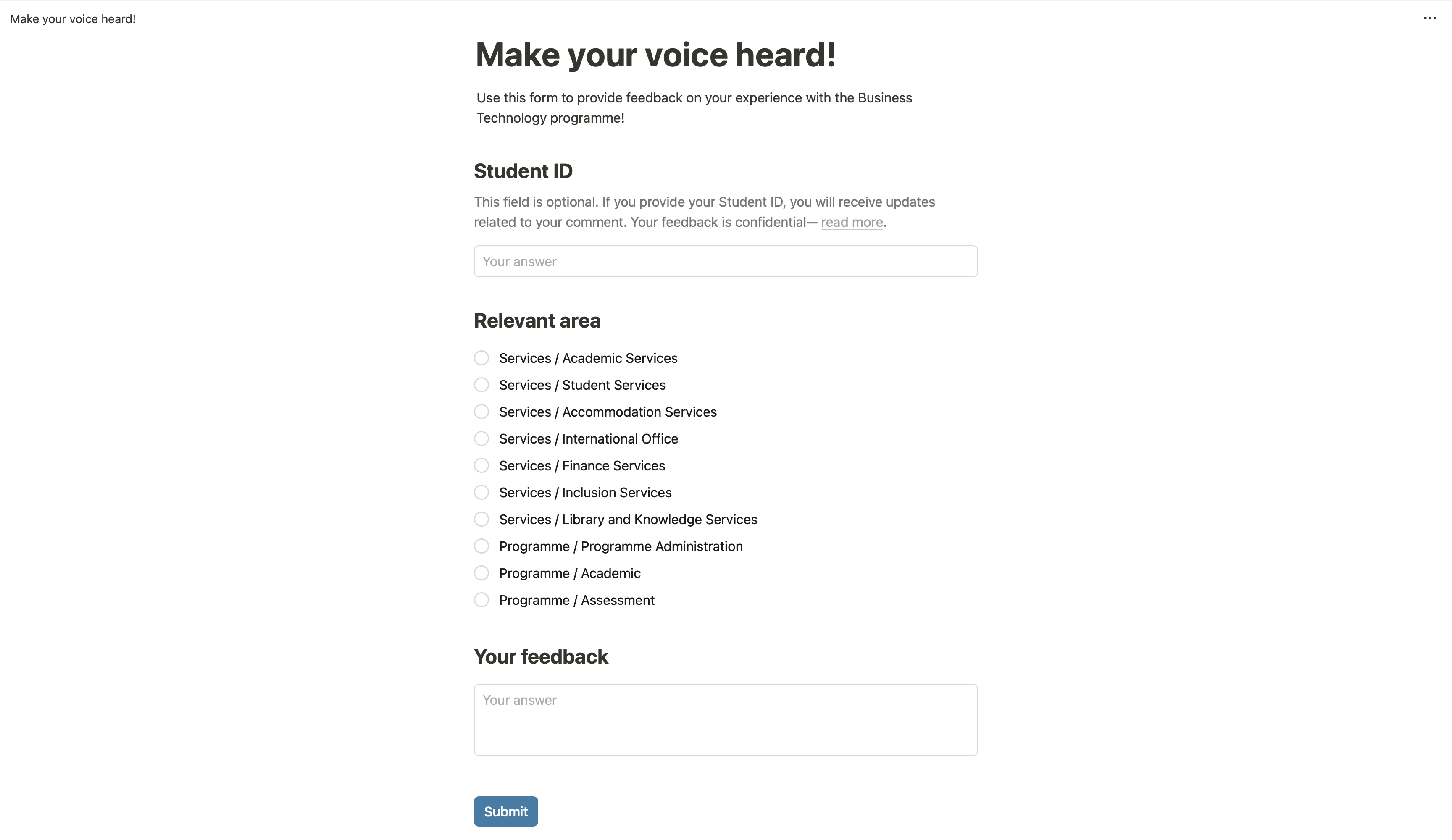 The most common example is the processing of feedback regarding curriculum delivery— the representation team receives many comments, from many students, regarding many modules. These comments need to be reviewed and bundled, then passed onto staff.