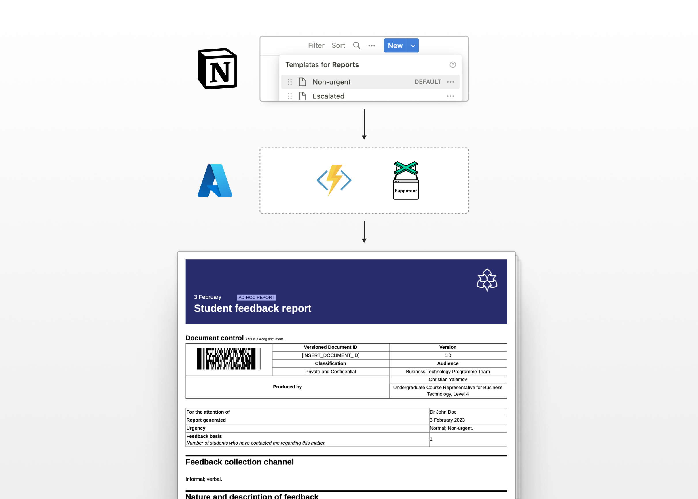 For more advanced automations, Azure Functions was more appropriate. For example, using Puppeteer, I was able to automatically generate .pdf reports that could be distributed to University staff, departments and services.