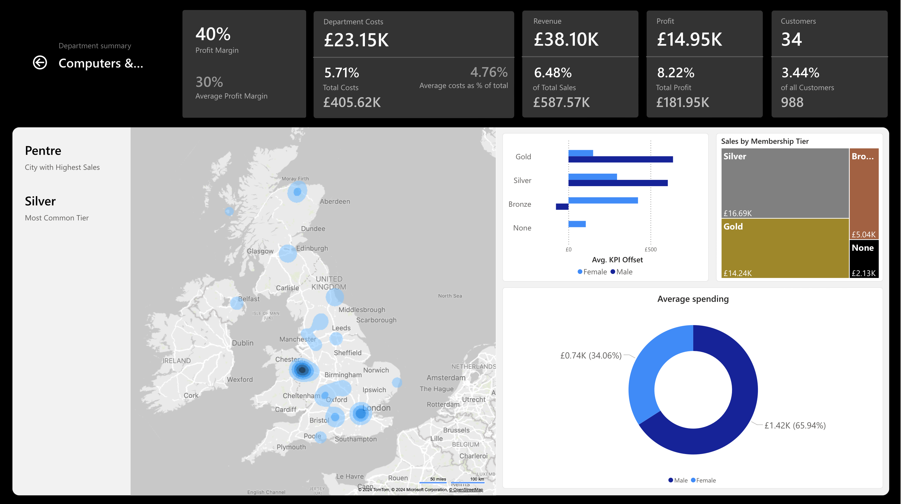 The assessment for this unit required the production of a data dashboard (using PowerBI), based on a fictional dataset which included data points regarding sales, customers, and loyalty program membership. This required sophisticated layout design (considering Human-Computer Interaction principles) and implementation of advanced features through the use of DAX (Data Analysis Expressions).